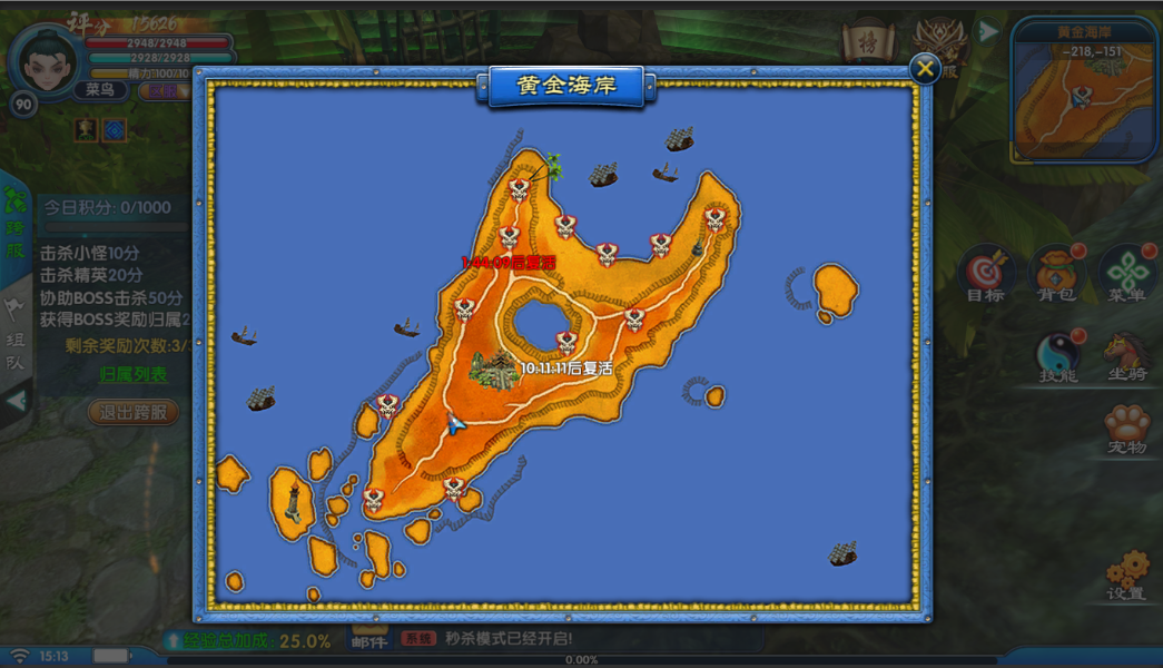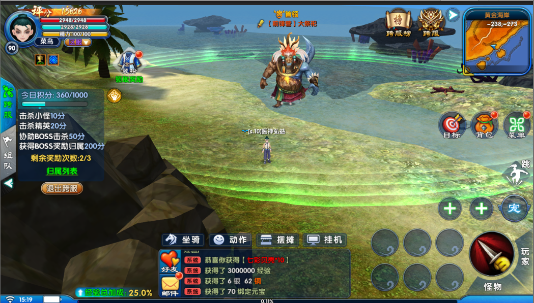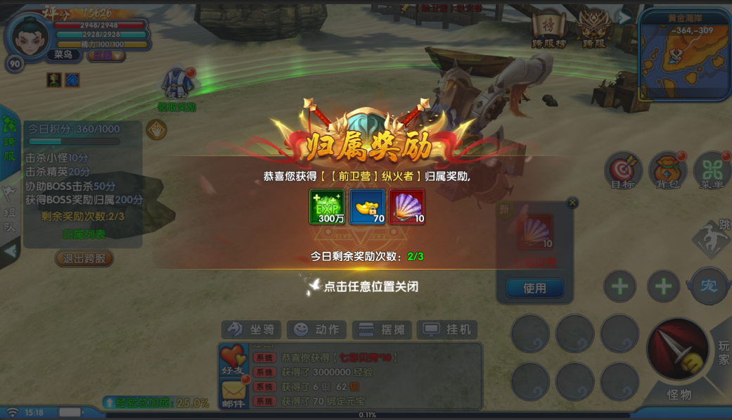 基础规则开放时间:每日12:30 - 22:30。 场景特性:跨服场景为危险地图,PK不增加善恶值,自由交战无惩罚。 注:更多跨服系统开放条件请以实际游戏更新为准。 ![]() 跨服首领挑战与争夺跨服场景内设有多种小怪、精英、首领,击杀可获得大量积分与珍稀奖励。跨服玩法中获得的战场积分可用于兑换道具。具体积分获取途径:击杀小怪、精英、协助BOSS击杀、获得BOSS经历归属。 这里需要注意的是BOSS奖励结算给归属时间最长的玩家,这意味着,智取与持久同样重要!是选择速战速决,还是稳扎稳打?全凭你的战略布局。另外每人每日最多可获得3次归属奖励,请合理安排挑战节奏。
